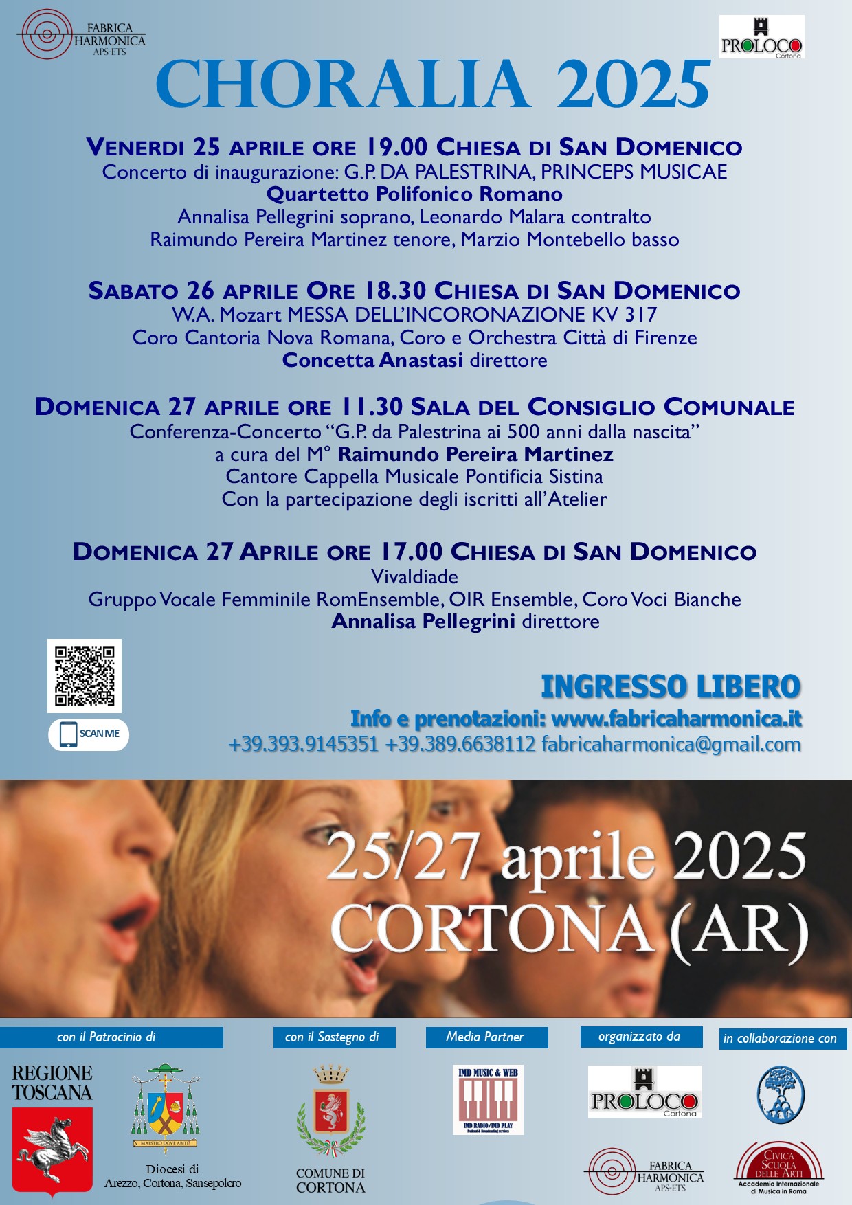- Parallelamente al Corso si svolgeranno quotidianamente concerti : https://www.fabricaharmonica.it/choralia-2025-workshop-ensemble-lessons-concerts